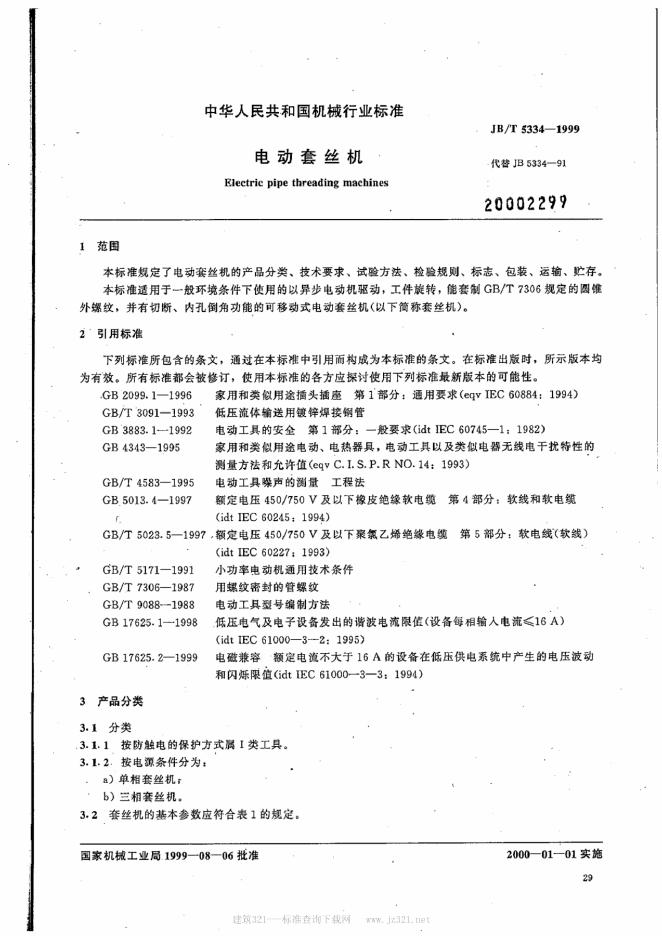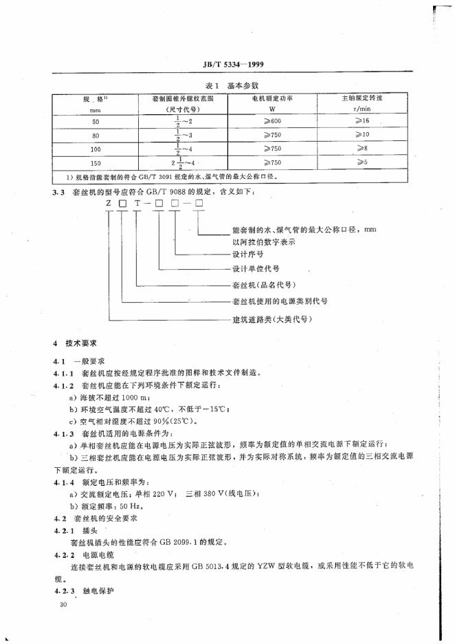 JB 5334-1991 电动套丝机