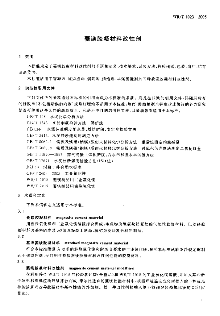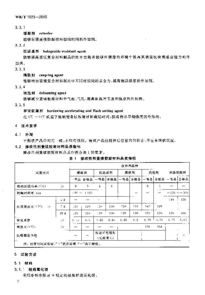 WB/T 1023-2005 菱镁胶凝材料改性剂