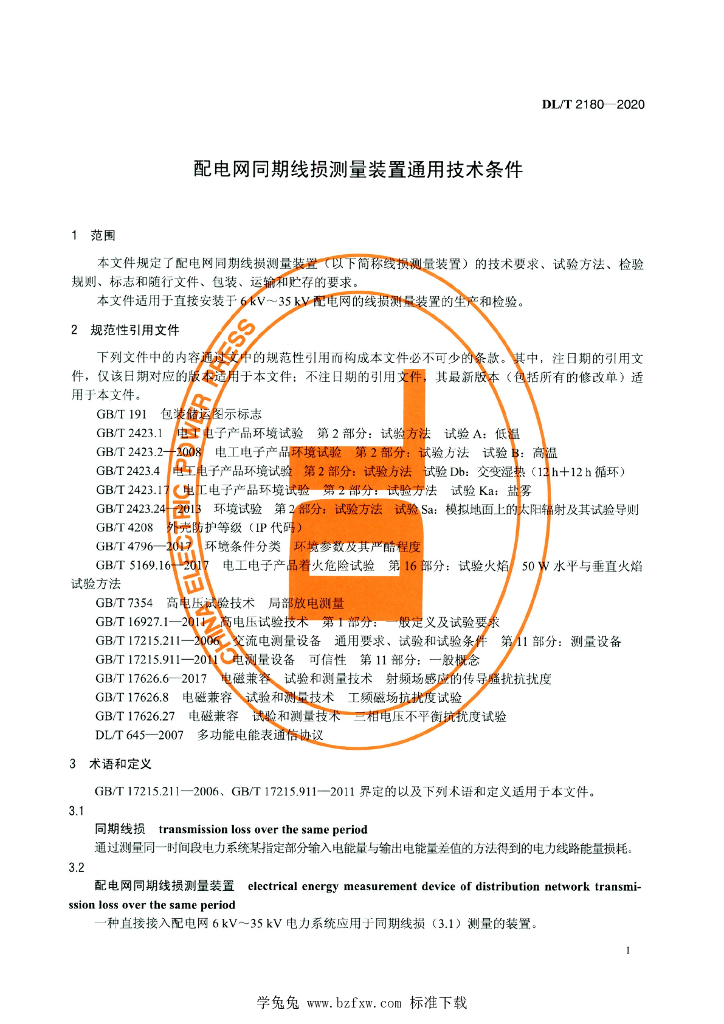 DL/T 2180-2020 配电网同期线损测量装置通用技术条件