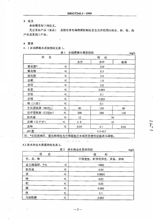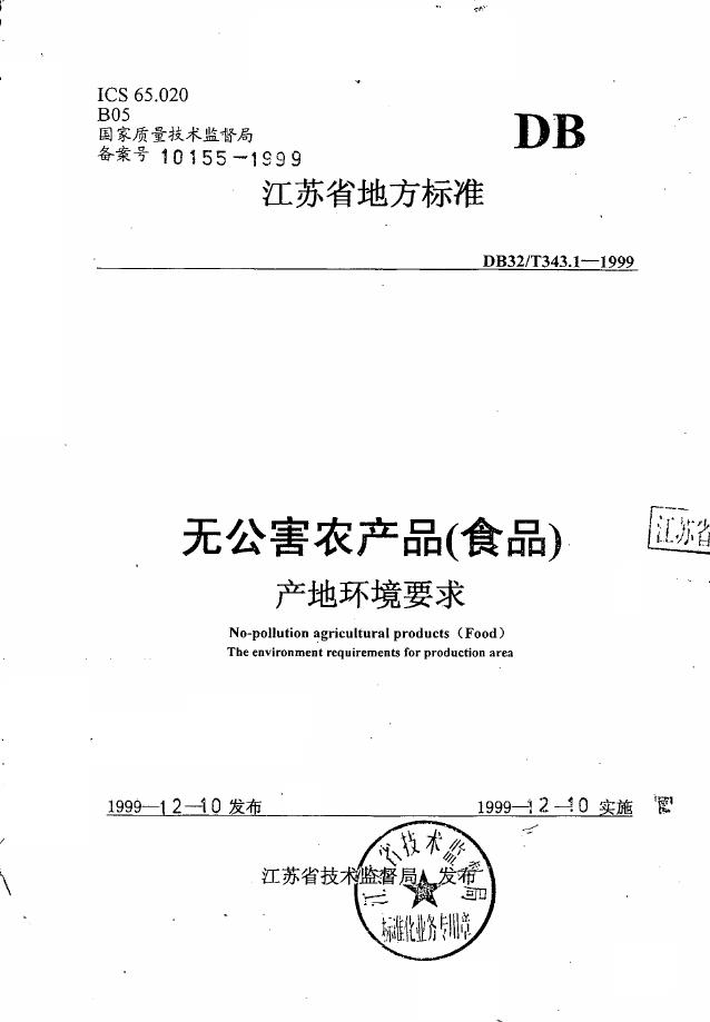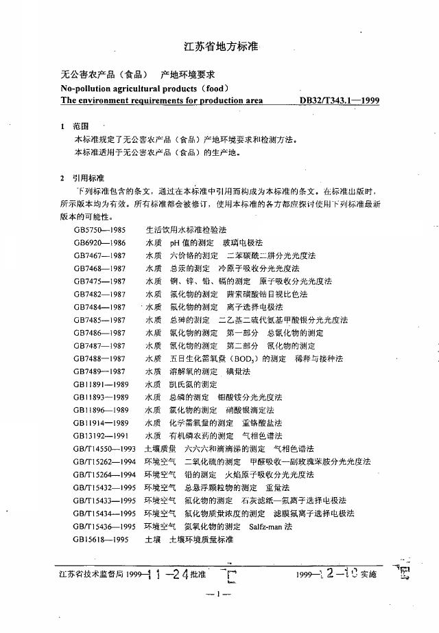 DB32/T 343.1-1999 无公害农产品(食品)产地环境要求