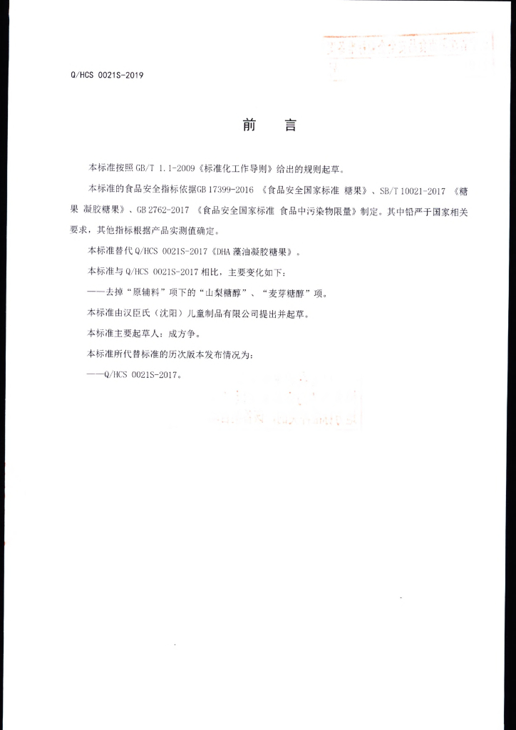Q/HCS 0021S-2019 DHA藻油凝胶糖果