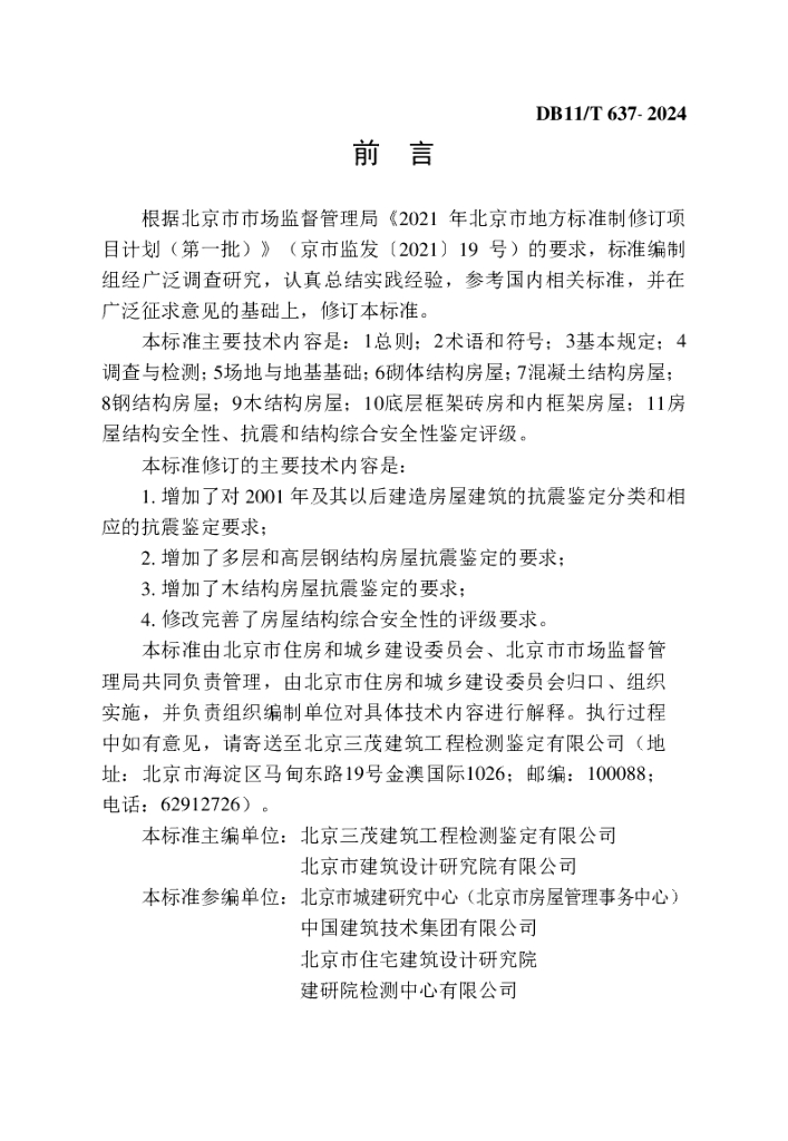北京三茂建筑工程检测鉴定有限公司、北京市建筑设计研究院有限公司、北京市城建研究中心(北京市房屋管理事务中心)、中国建筑技术集团有限公司、北京市住宅建筑设计研究院、建研院检测中心有限公司、北京市朝阳区房屋管理局房屋管理事务中心、北京市建设工程质量第二检测所有限公司、中交路星(北京)工程技术检测有限公司、北京市海淀区房屋安全鉴定站、中国建筑标准设计研究院有限公司、中电投工程研究检测评定中心有限公司、北京市建设工程质量第三检测所有限公司