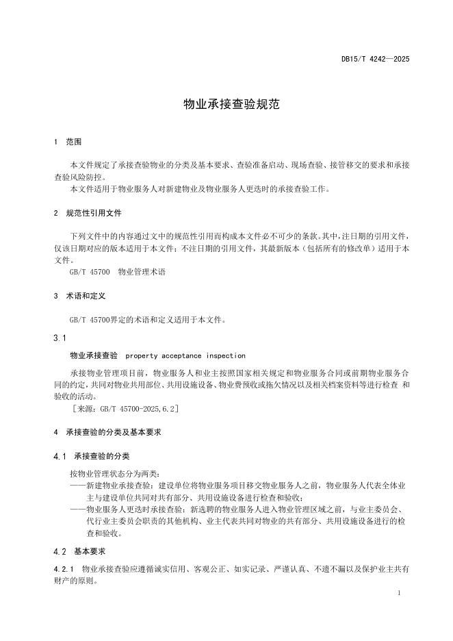 DB15/T 4242-2025 物业承接查验规范