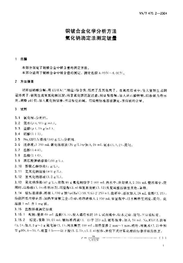 YS/T 470.2-2004 铜铍合金化学分析方法氟化钠滴定法测定铍量