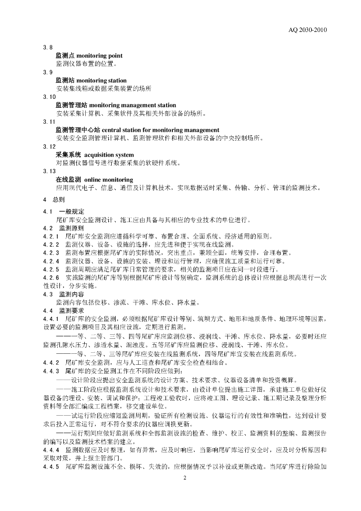 AQ 2030-2010 尾矿库安全监测技术规范
