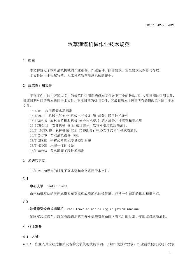 DB15/T 4272-2026 牧草灌溉机械作业技术规范