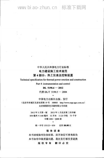 DL 5190.4-2012 电力建设施工技术规范 第4部分:热工仪表及控制装置