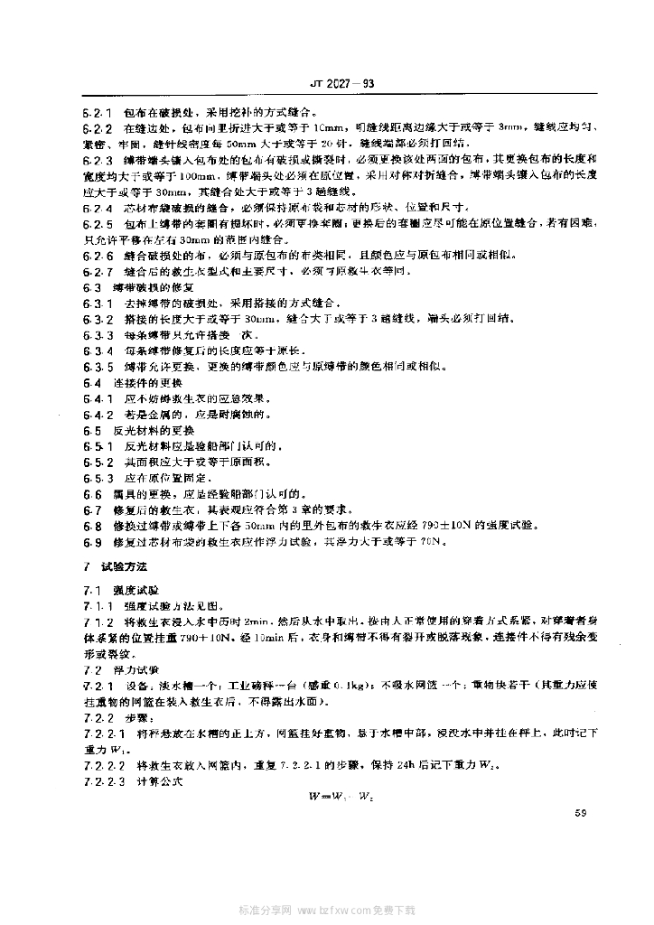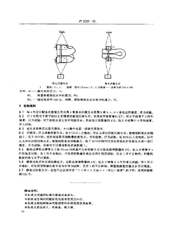 JT 2027-1993 内河船舶救生衣一修复、 报废