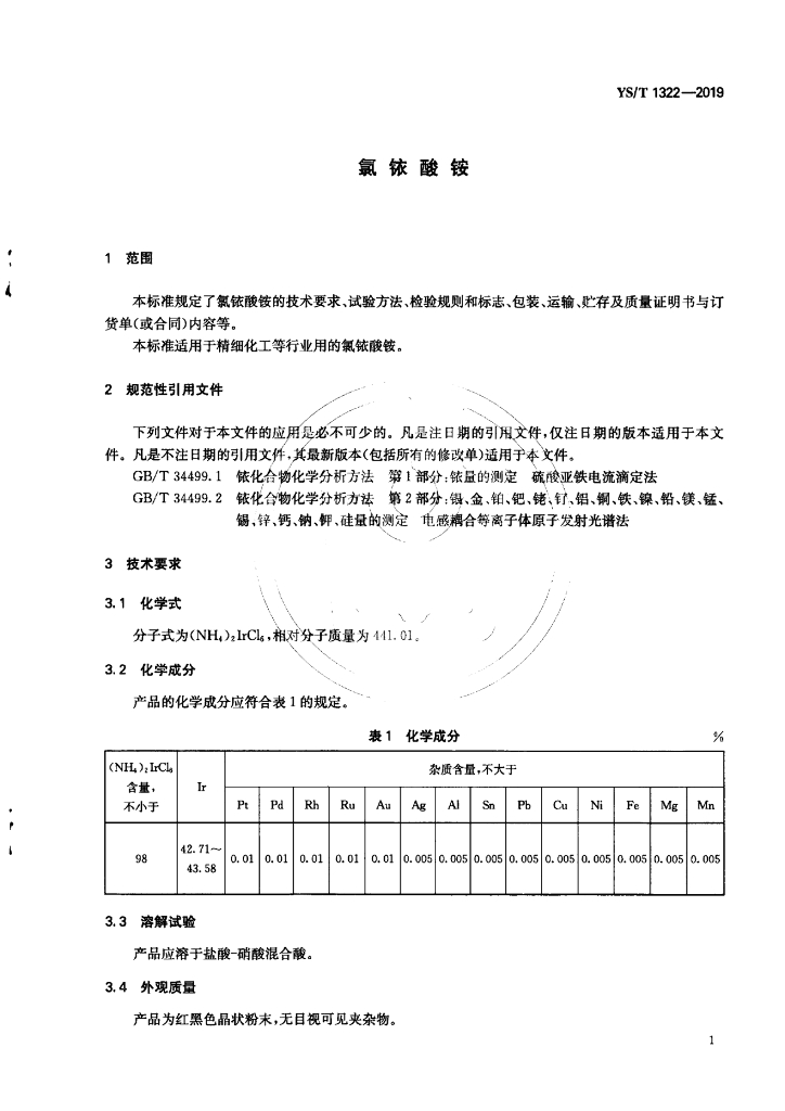 YS/T 1322-2019 氯铱酸铵