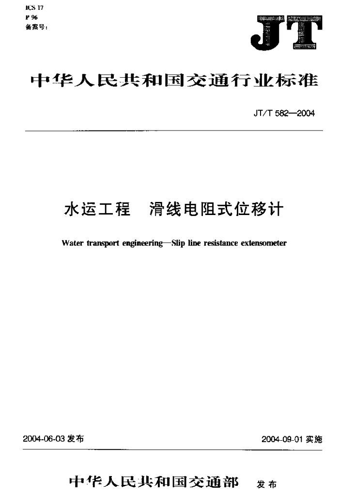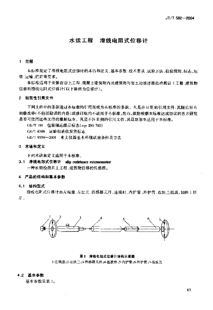 JT/T 582-2004 水运工程 滑线电阻式位移计