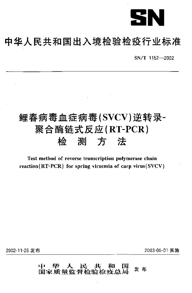 SN/T 1152-2002 鲤春病毒血症病毒(SVCV)逆转录-聚合酶链式反应(RT-PCR)检测方法