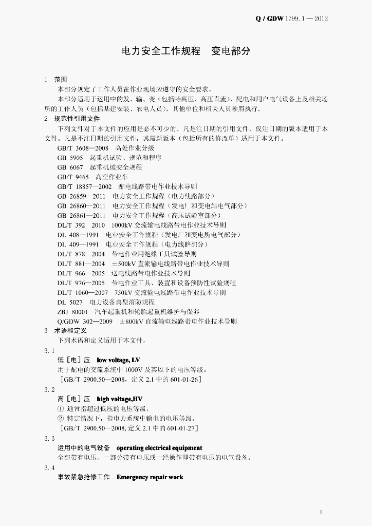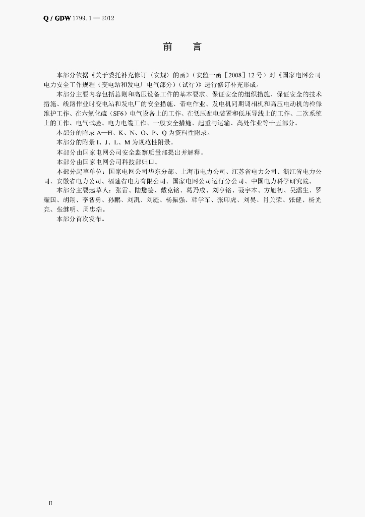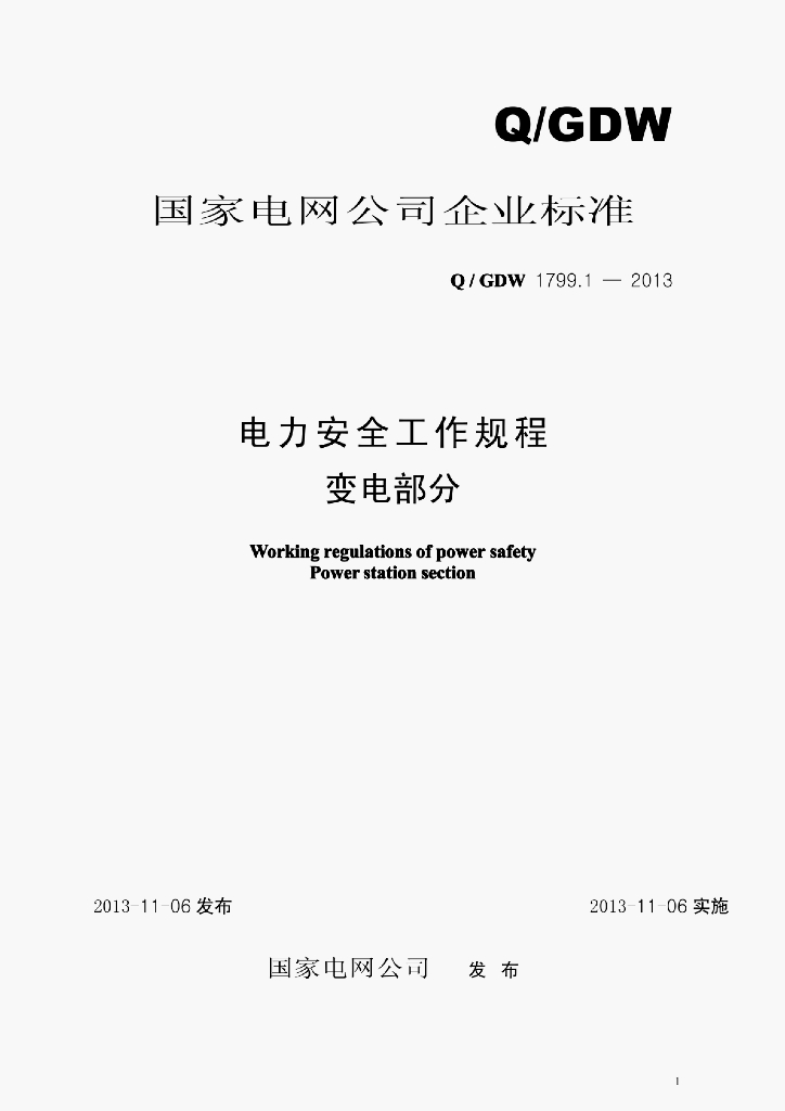 Q/GDW 1799.1-2012 电力安全工作规程变电部分