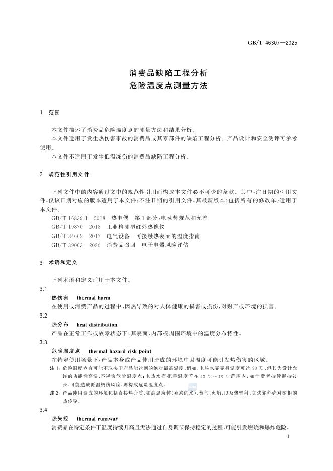 GB/T 46307-2025 消费品缺陷工程分析 危险温度点测量方法