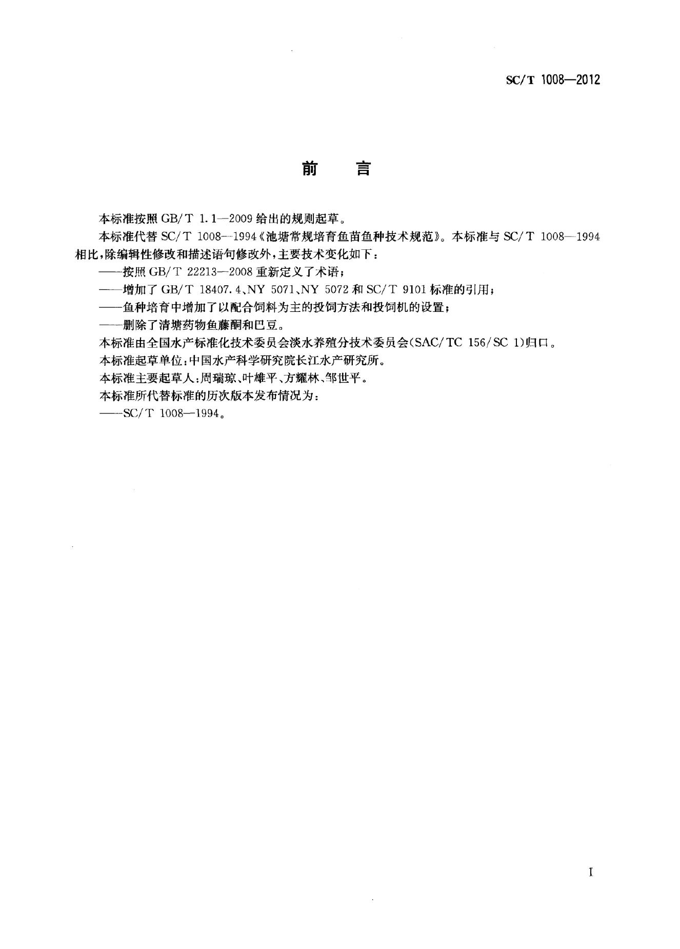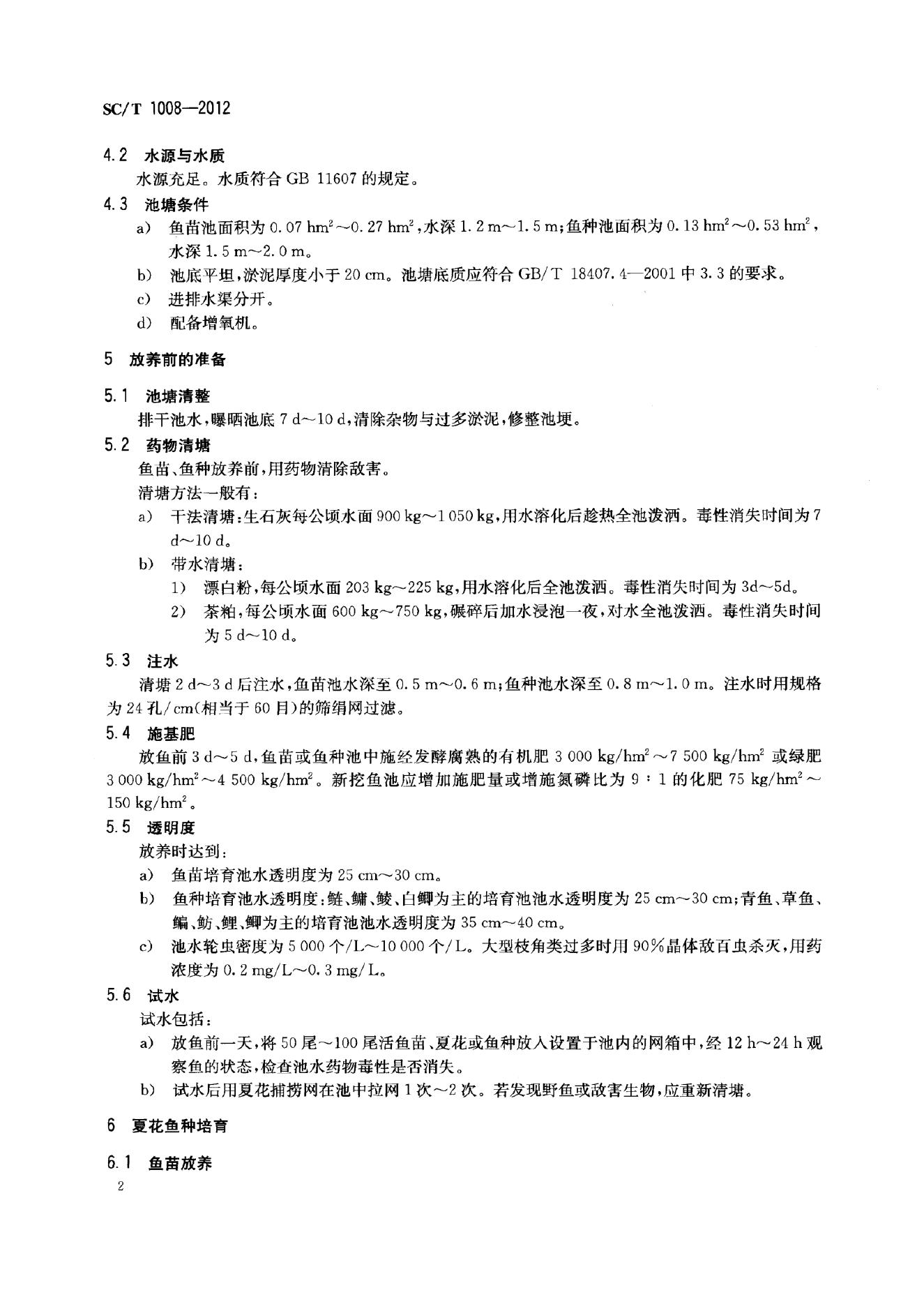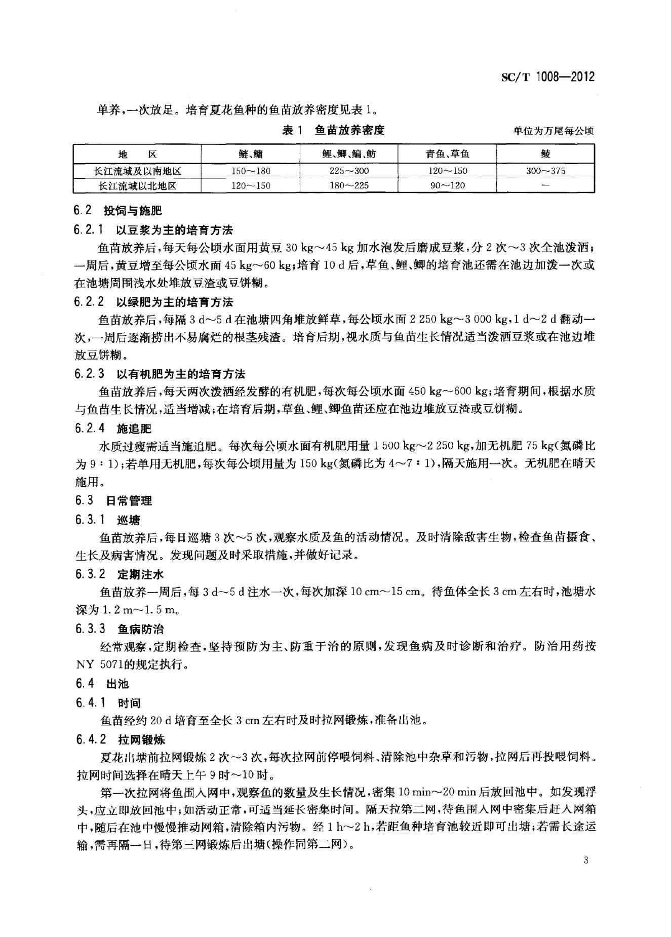 SC/T 1008-2012 淡水鱼苗种池塘常规培育技术规范
