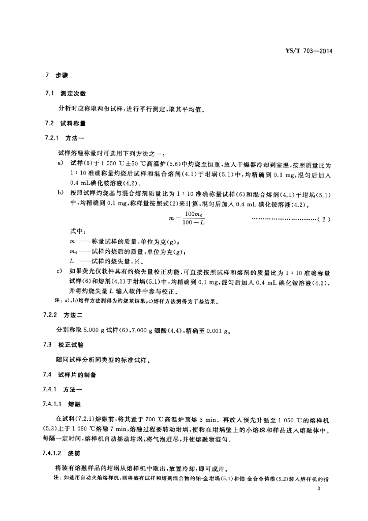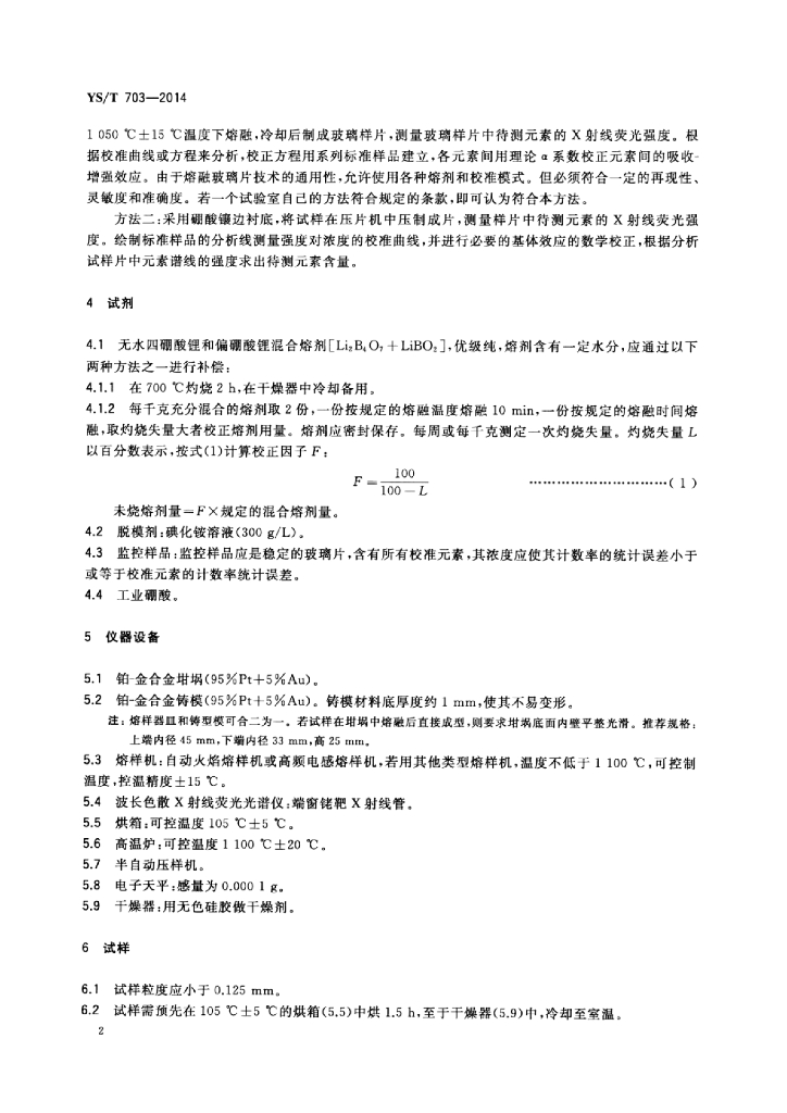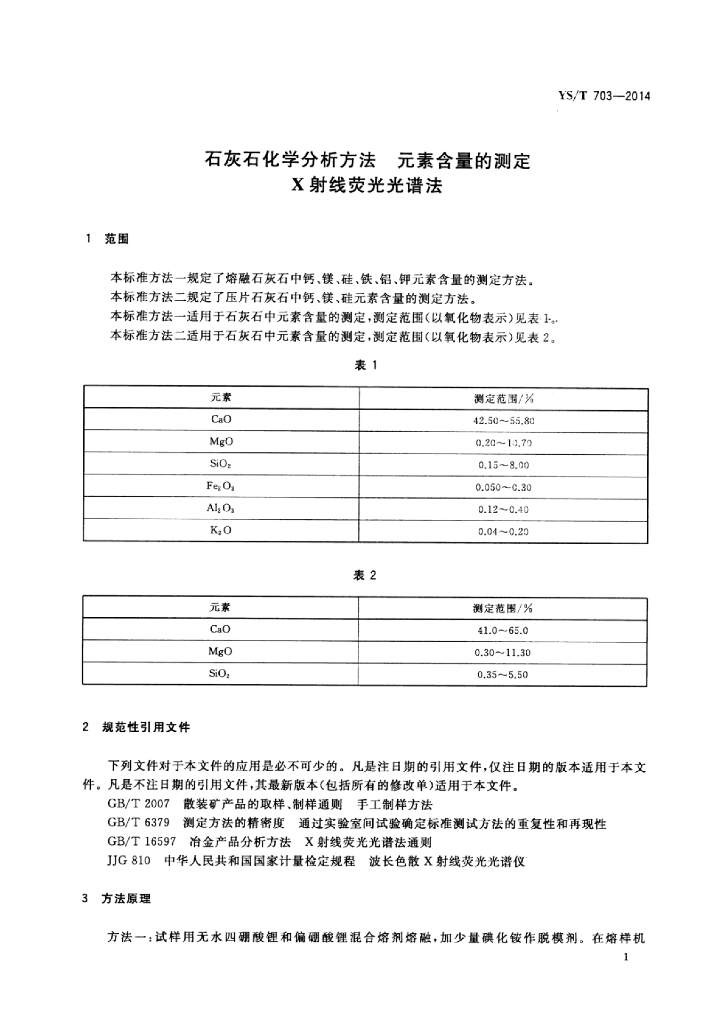 YS/T 703-2014 石灰石化学分析方法元素含量的测定X射线荧光光谱法
