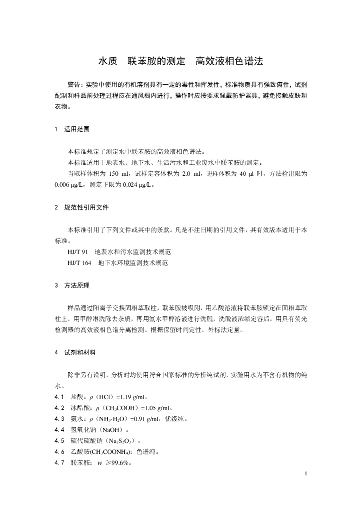 HJ 1014-2019 水质 联苯胺的测定 高效液相色谱法