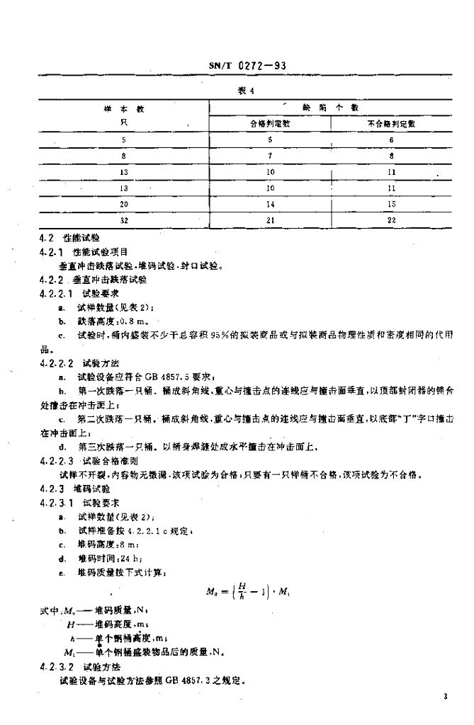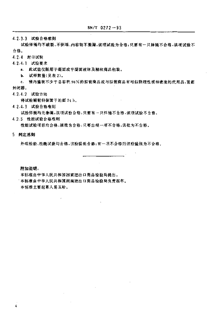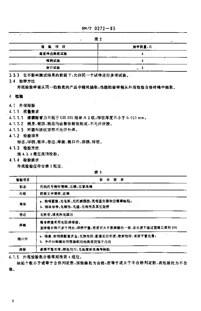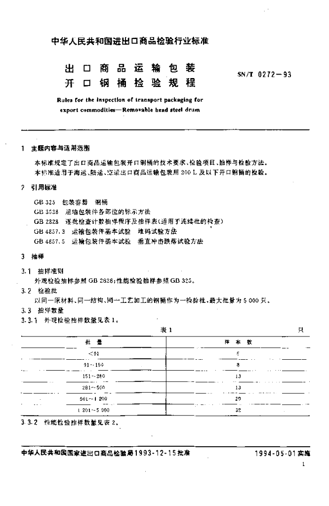 SN/T 0272-1993 出口商品运输包装 开口钢桶检验规程