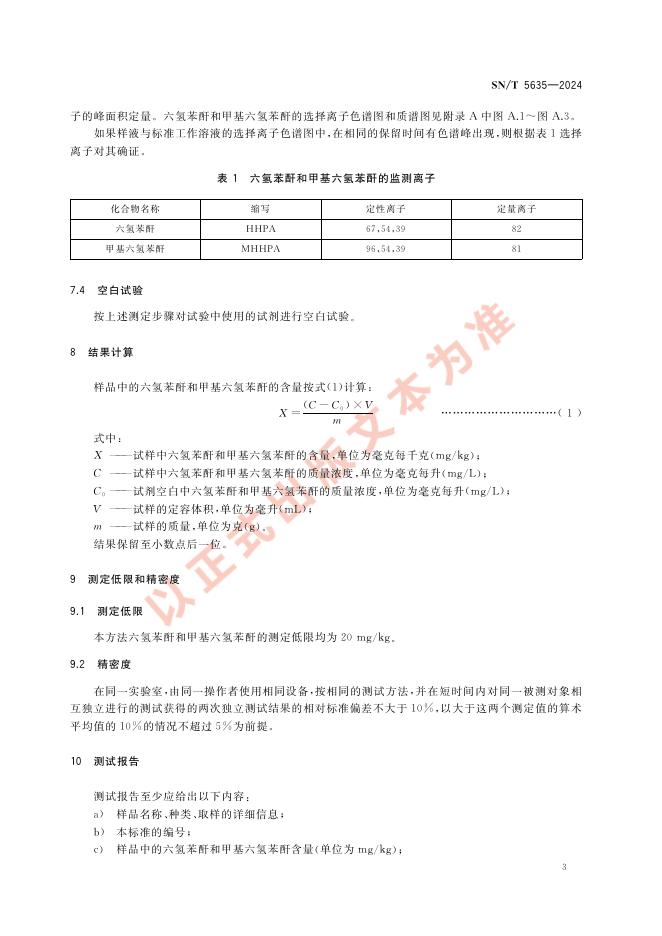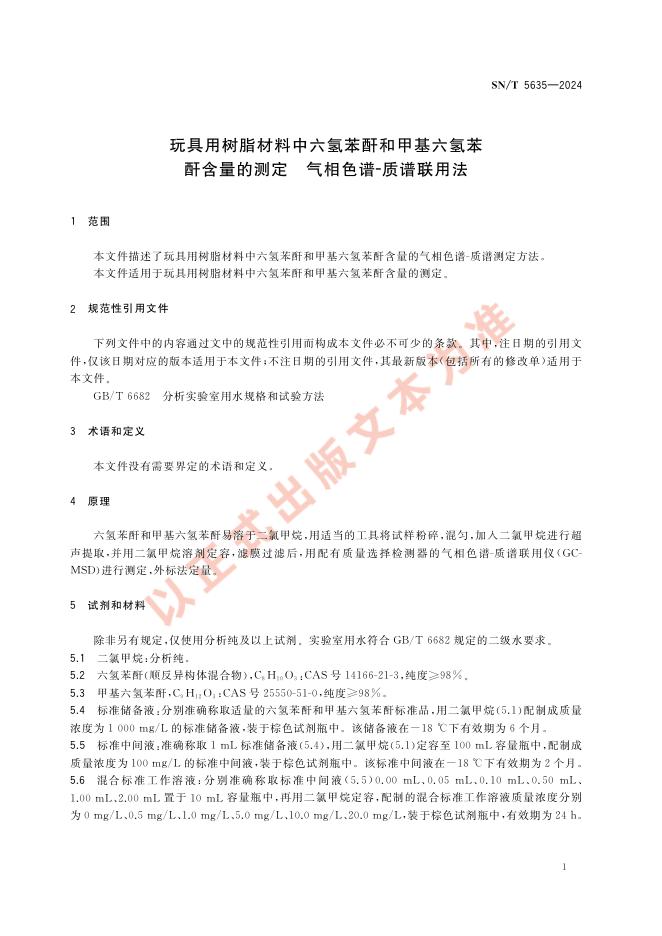 SN/T 5635-2024 玩具用树脂材料中六氢苯酐和甲基六氢苯酐含量的测定 气相色谱-质谱联用法