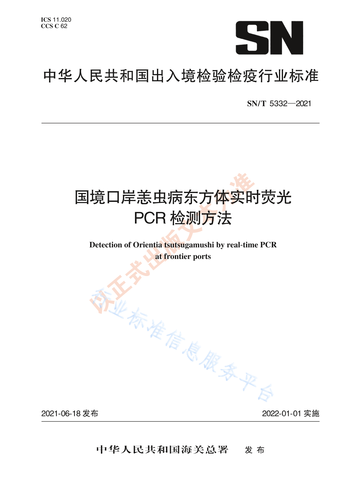 SN/T 5332-2021 国境口岸恙虫病东方体实时荧光PCR检测方法