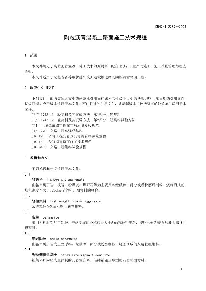 DB42/T 2389-2025 陶粒沥青混凝土路面施工技术规程