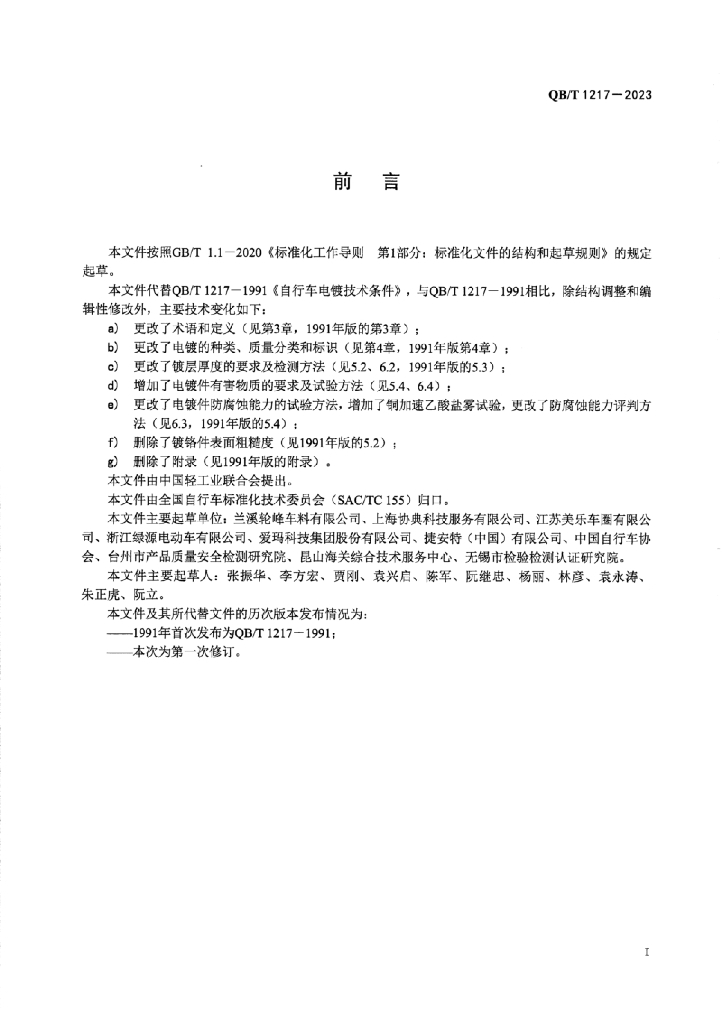 - 代替标准:QB/T 1217-1991