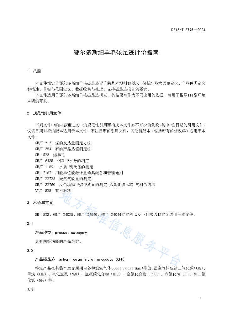DB15/T 3775-2024 鄂尔多斯细羊毛碳足迹评价指南