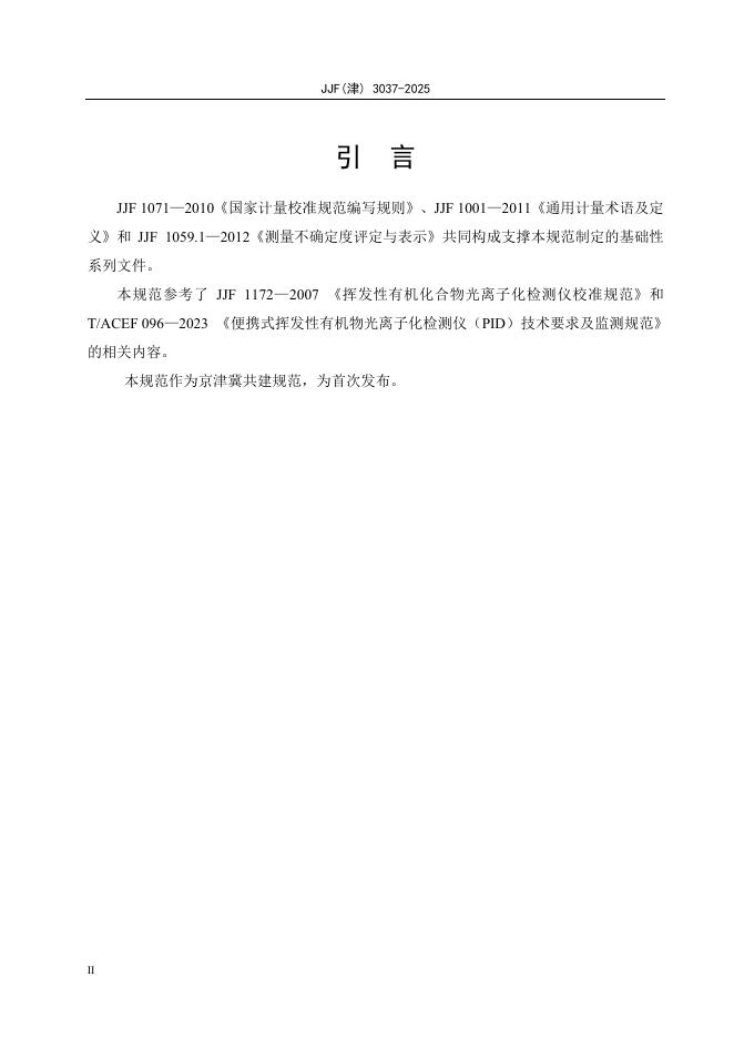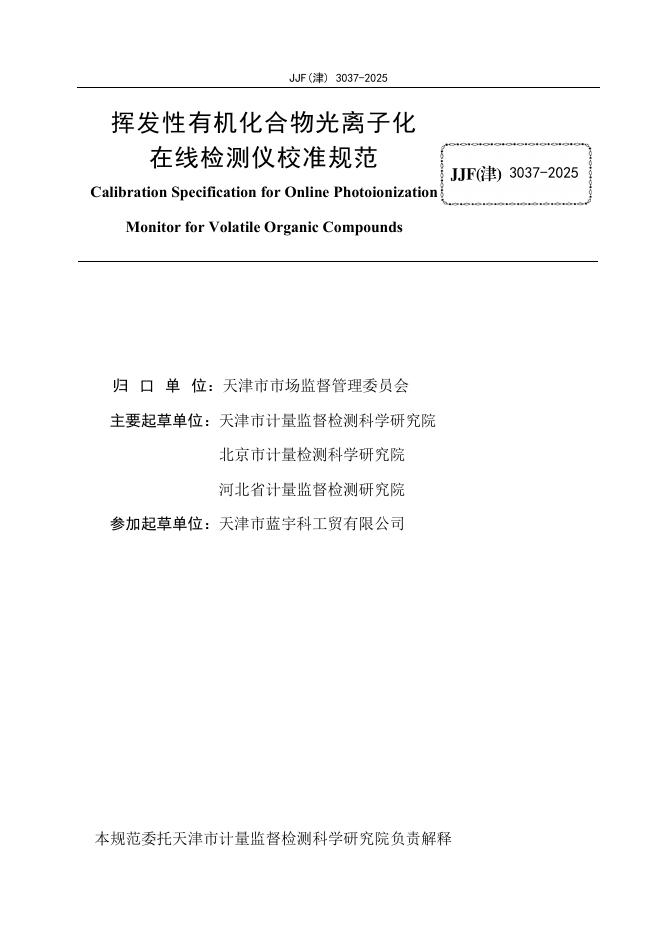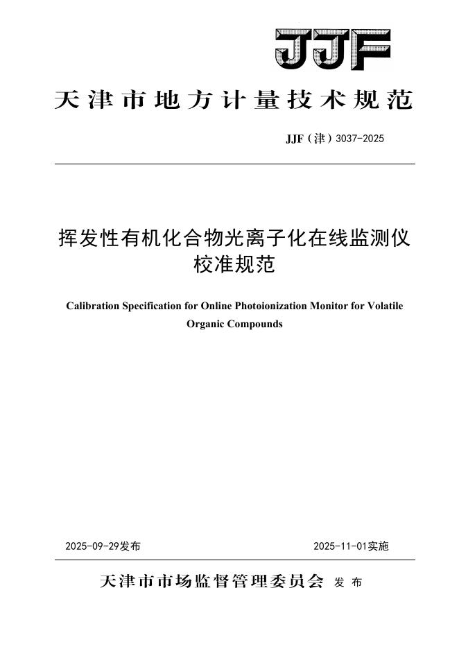 JJF(津)3037-2025 挥发性有机化合物光离子化在线监测仪校准规范