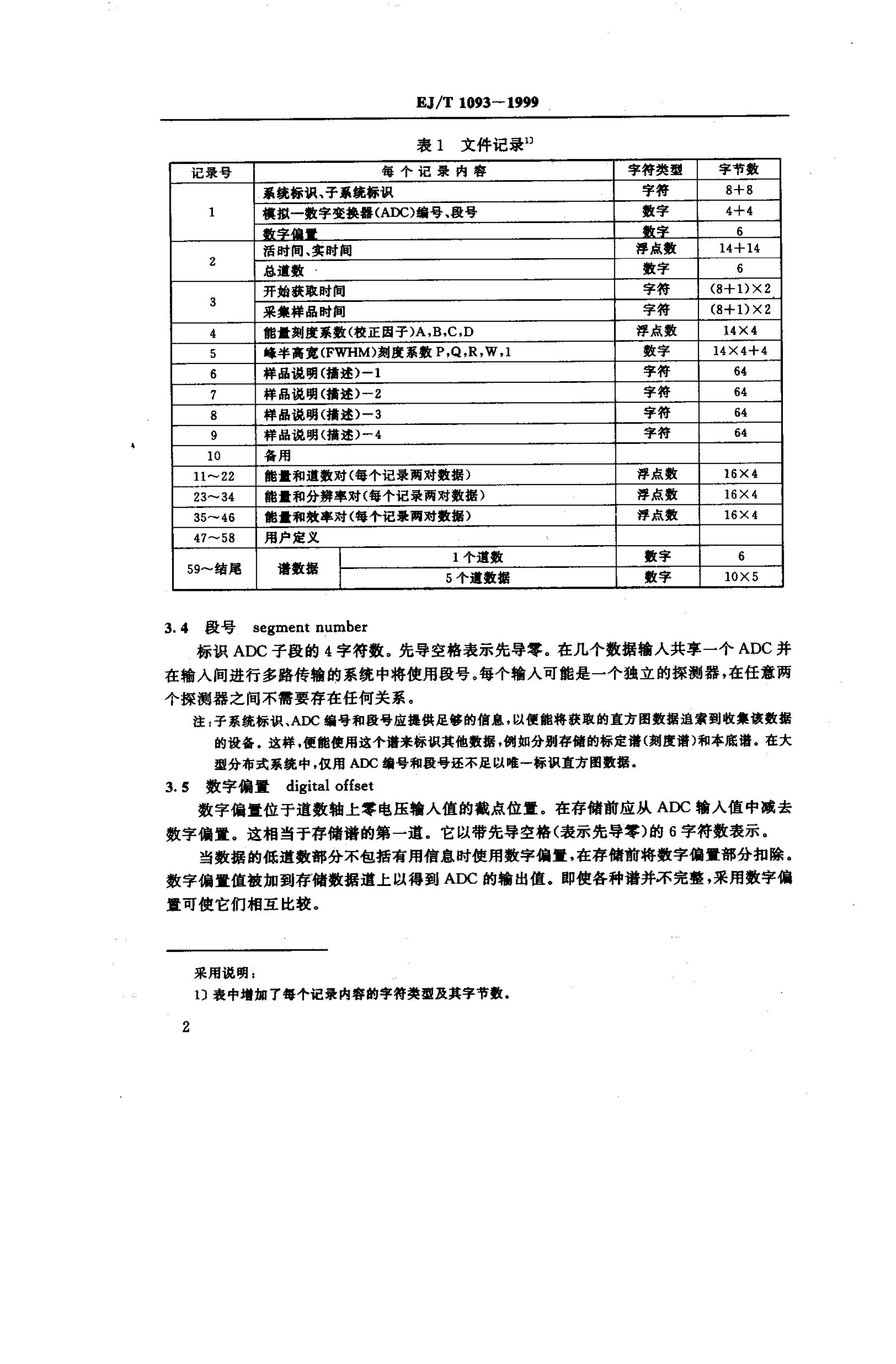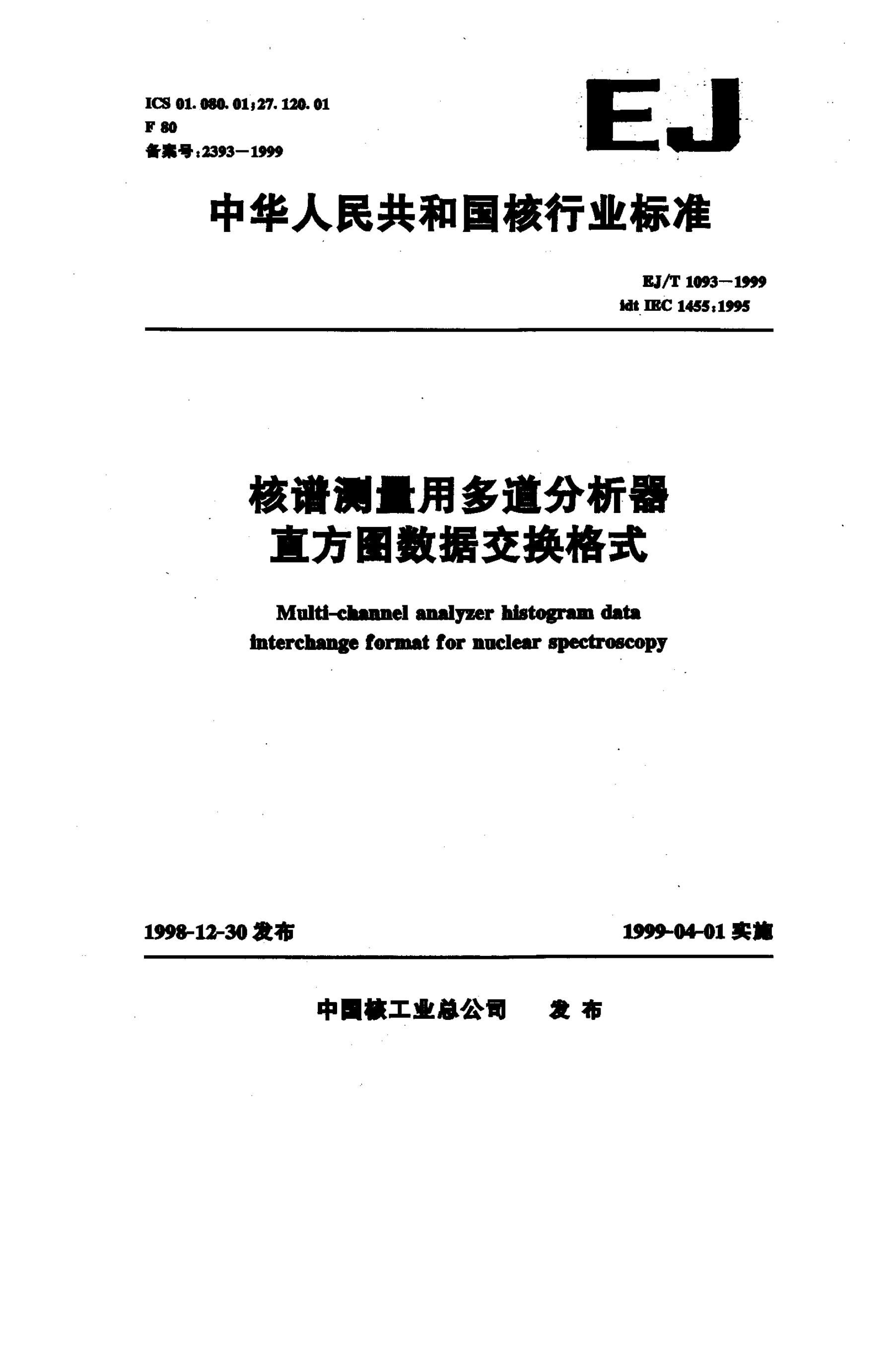EJ/T 1093-1999 核谱测量用多道分析器直方图数据交换格式