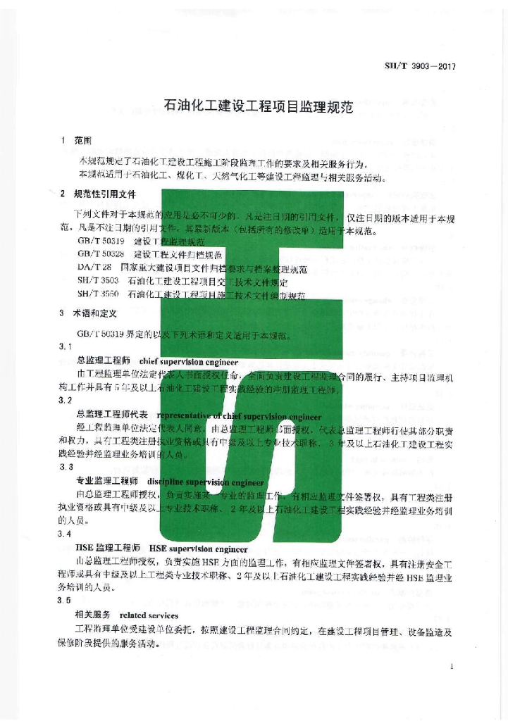 SH/T 3903-2017 石油化工建设工程项目监理规范