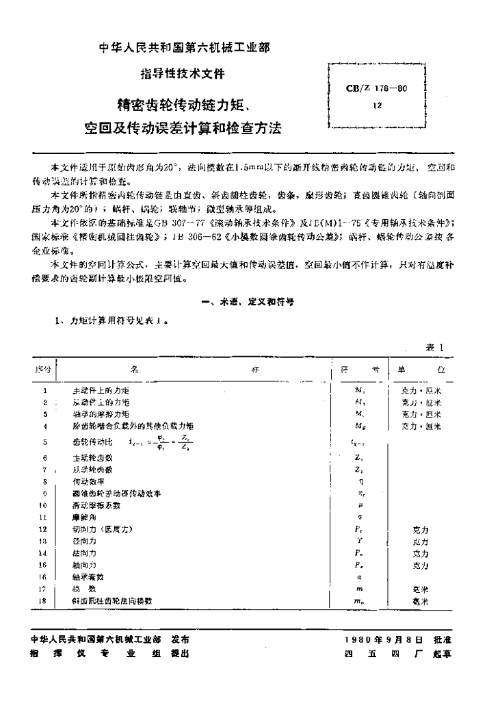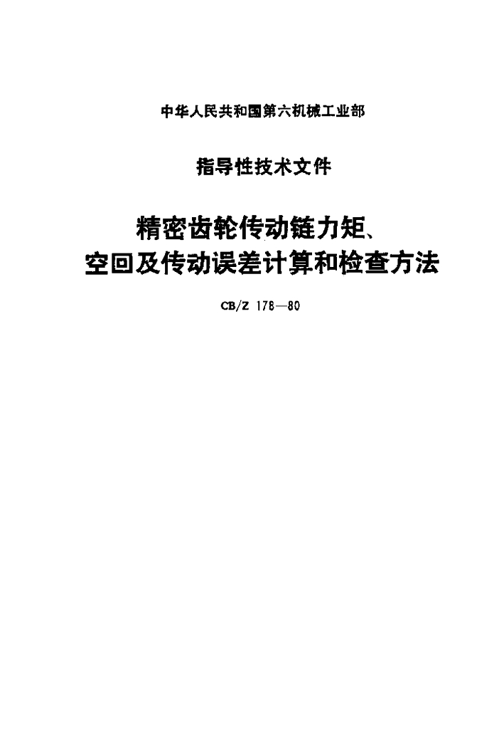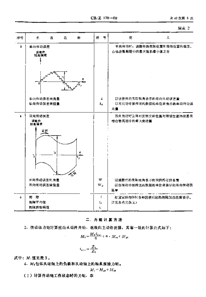 CB/Z 178-1980 精密齿轮传动链力矩、空回及传动误差计算和检查方法