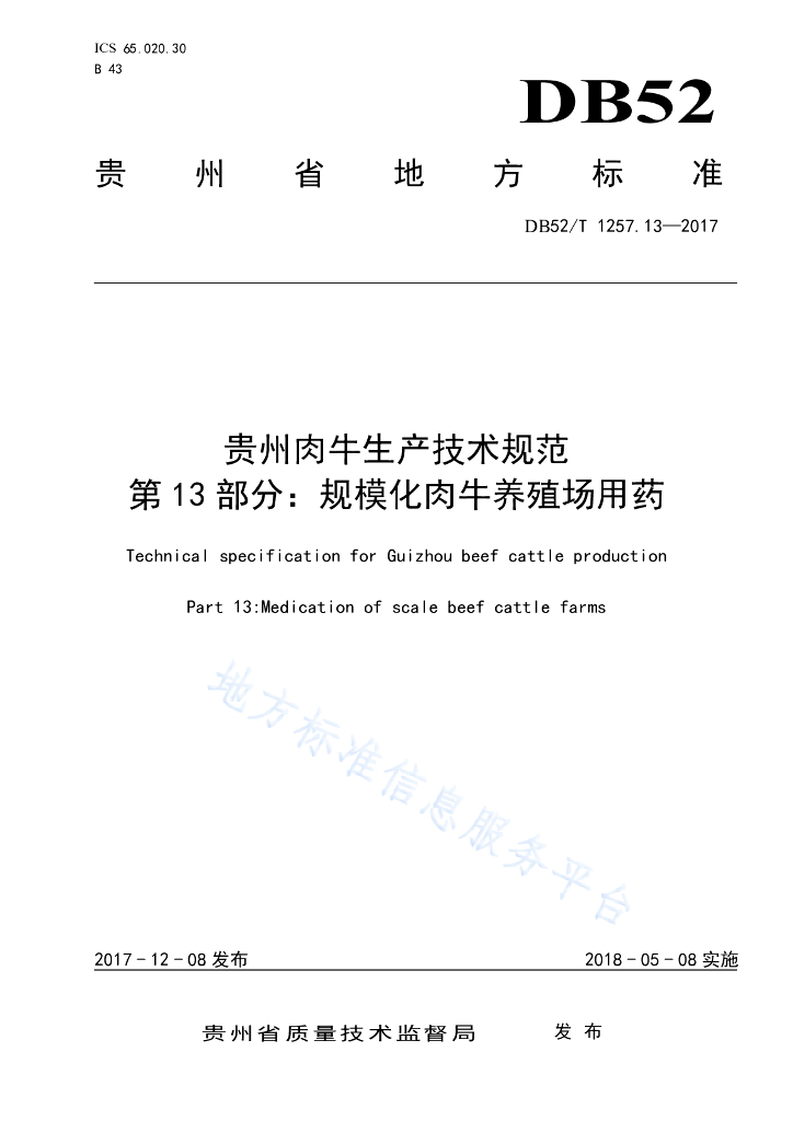 DB52/T 1257.13-2017 贵州肉牛生产技术规范 第13部分:规模化肉牛养殖场用药