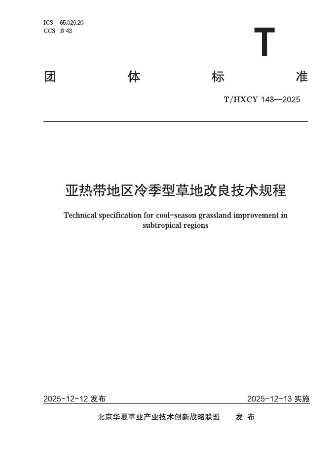 T/HXCY 148-2025 亚热带地区冷季型草地改良技术规程