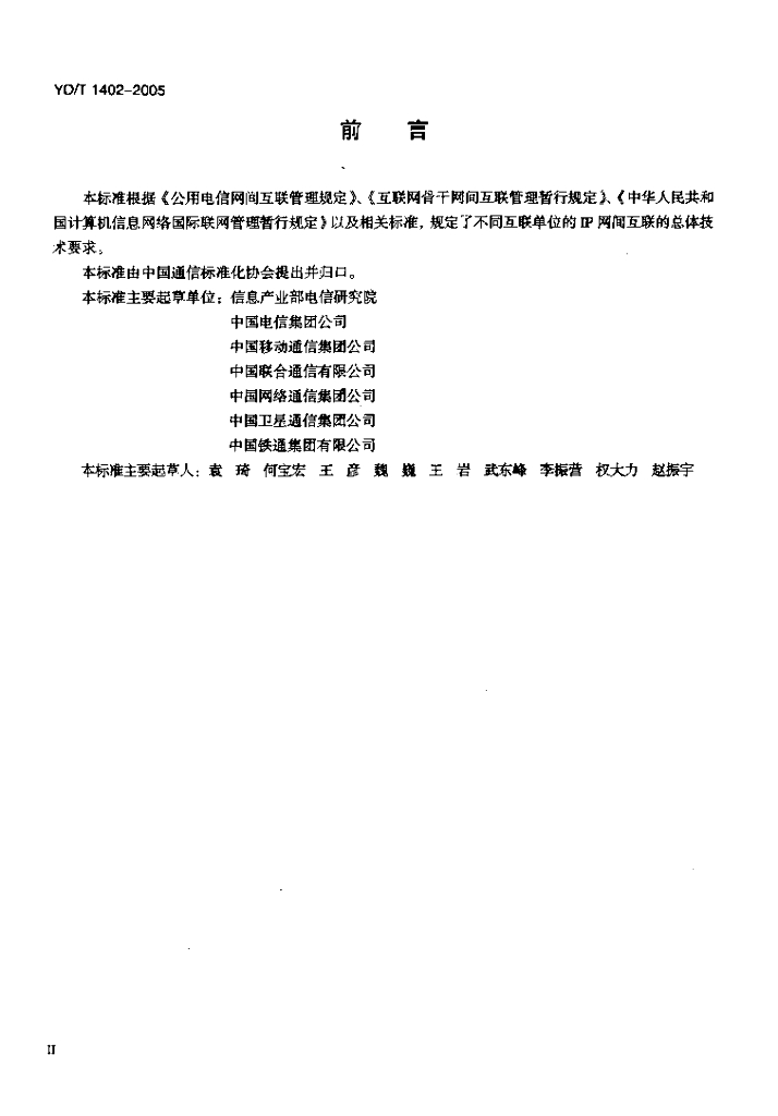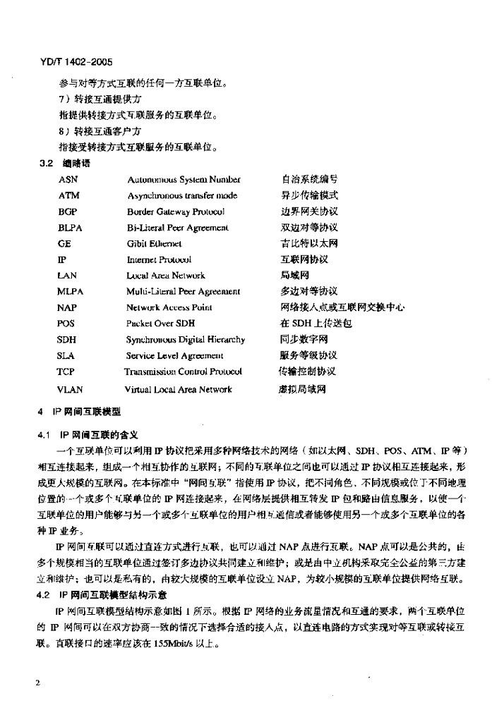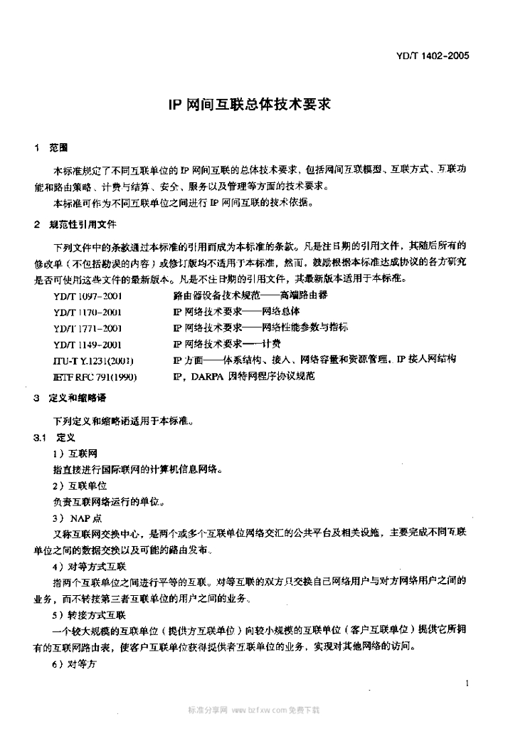 YD/T 1402-2005 IP 网间互联总体技术要求