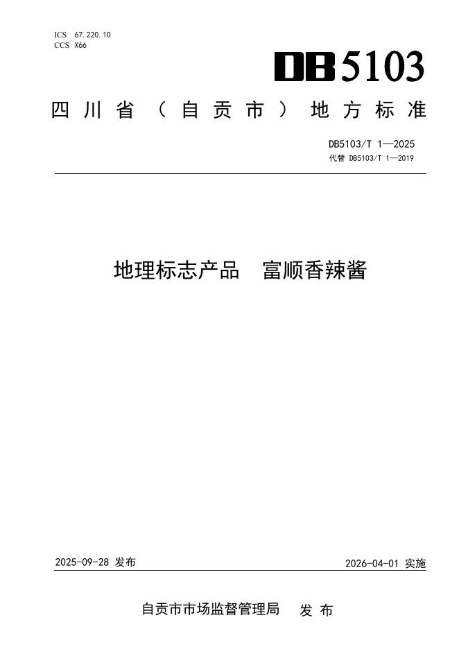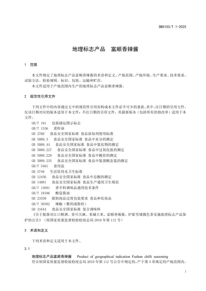 DB5103/T 1-2019 地理标志产品 富顺香辣酱生产技术规范