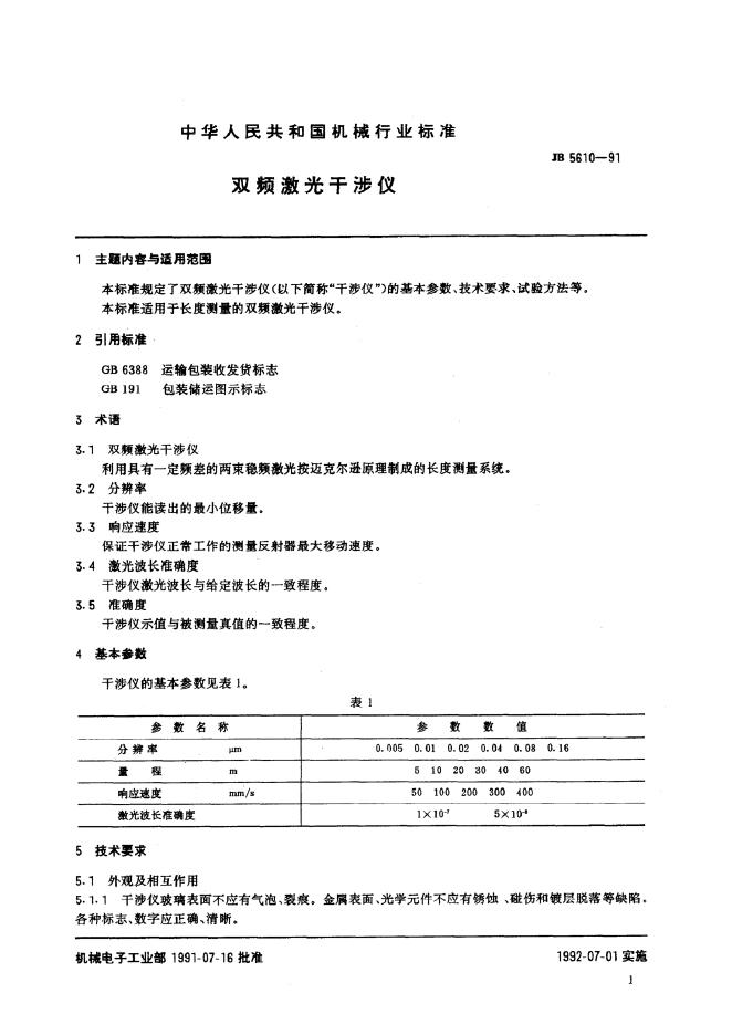 JB 5610-1991 双频激光干涉仪