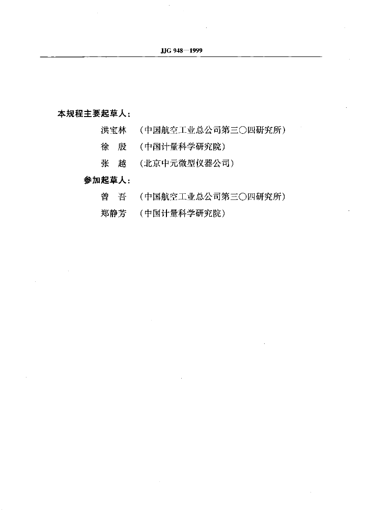 洪宝林(中国航空工业总公司第三○四研究所)、徐殷(中国计量科学研究院)、张越(北京中元微型仪器公司)、曾吾(中国航空工业总公司第三○四研究所)、郑静芳(中国计量科学研究院)