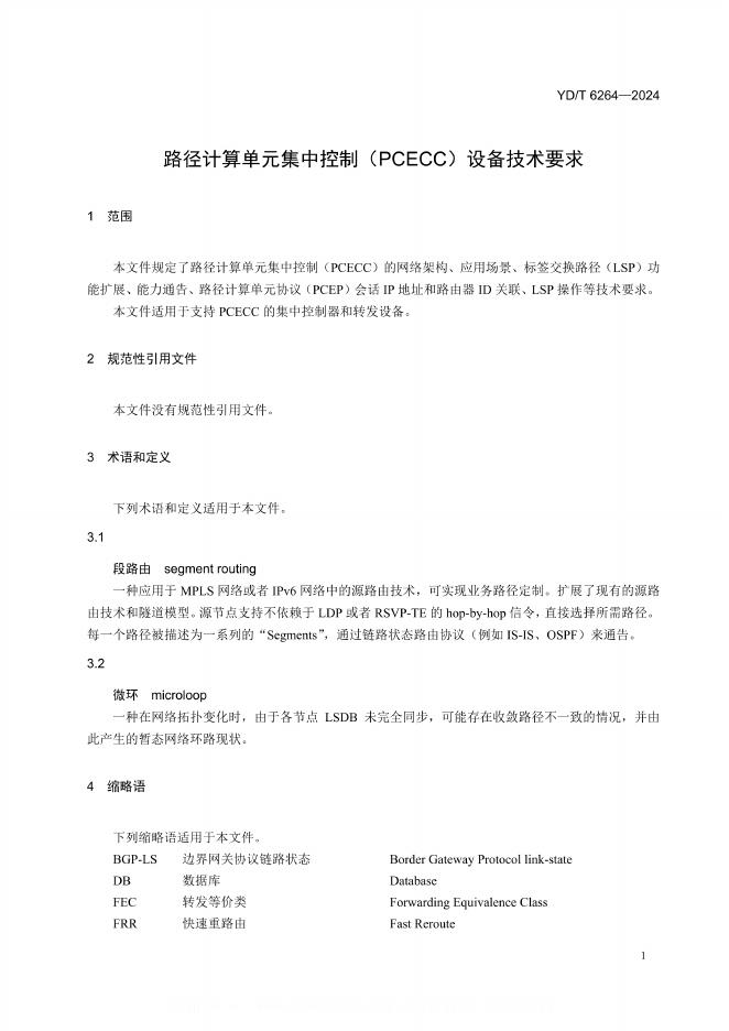 YD/T 6264-2024 路径计算单元集中控制(PCECC)设备技术要求