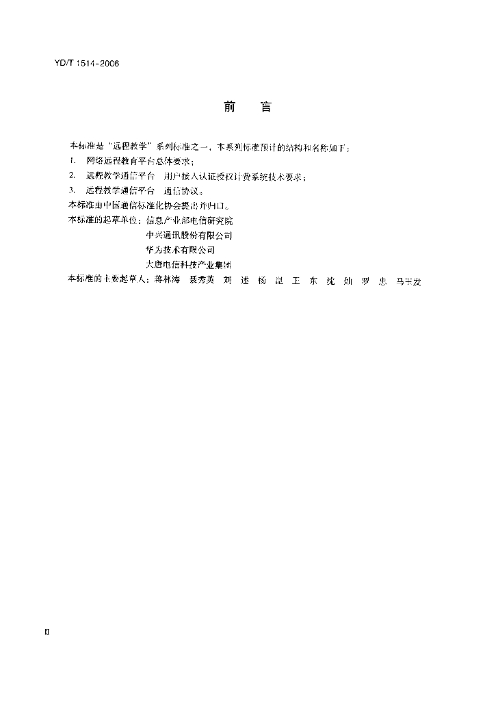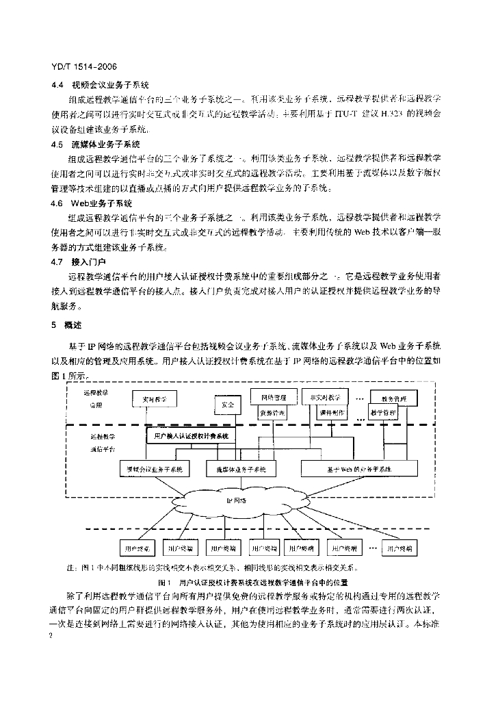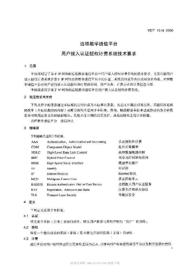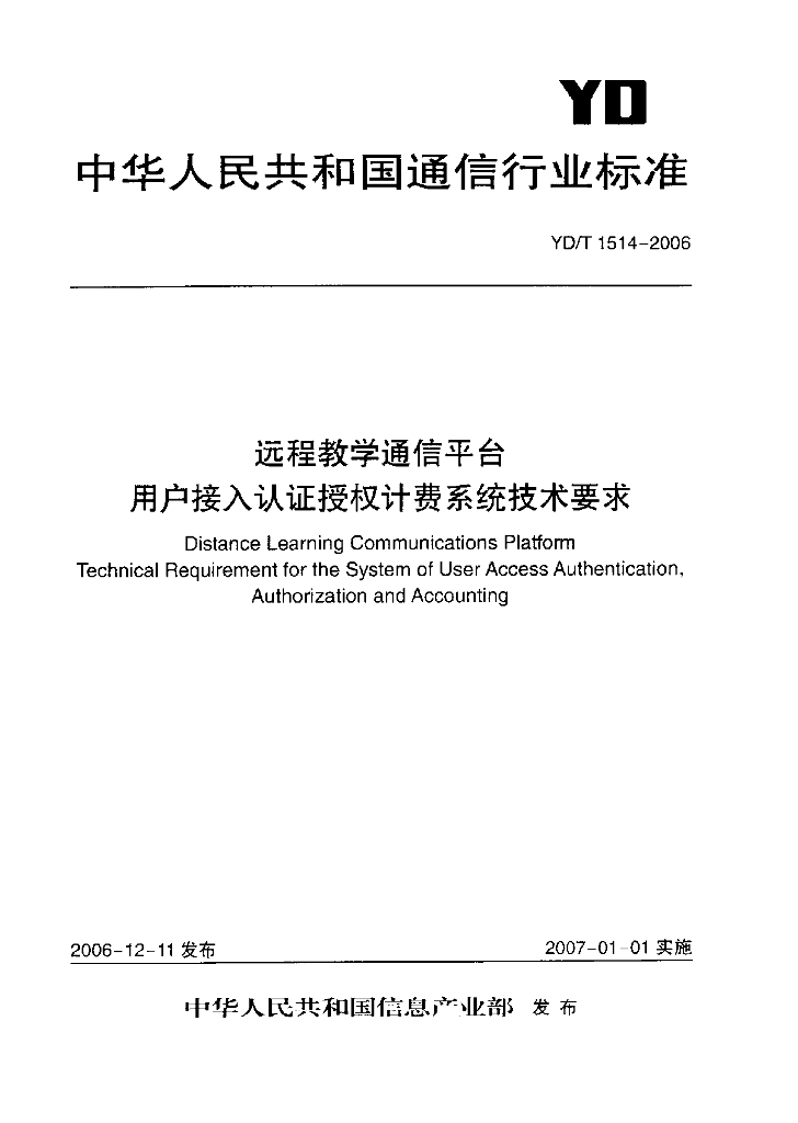 YD/T 1514-2006 远程教学通信平台用户接入认证授权计费系统技术要求
