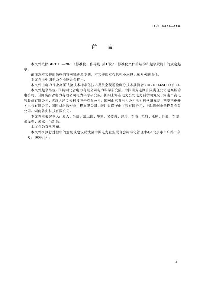 本文件起草单位:国网湖北省电力有限公司电力科学研究院、中国南方电网有限责任公司超高压输电公司、国网陕西省电力有限公司电力科学研究院、国网上海市电力公司电力科学研究院、河南平高电气股份有限公司、武汉大洋义天科技股份有限公司、国网山东省电力公司电力科学研究院、西安西电开关电气有限公司、国网湖北送变电工程有限公司、浙江省送变电工程有限公司、上海思创电器设备有限公司、湖南防灾科技有限公司。