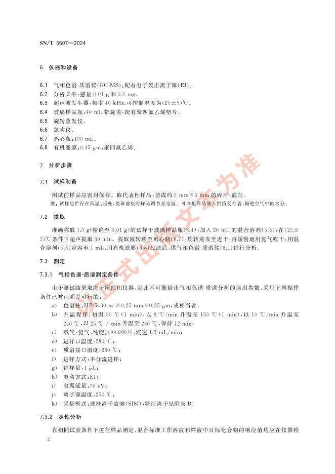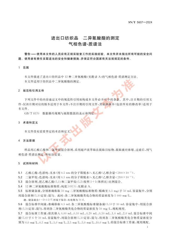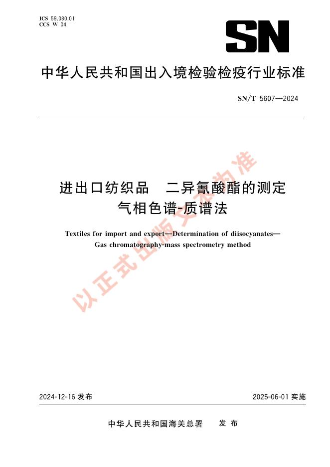 SN/T 5607-2024 进出口纺织品 二异氰酸酯的测定 气相色谱-质谱法