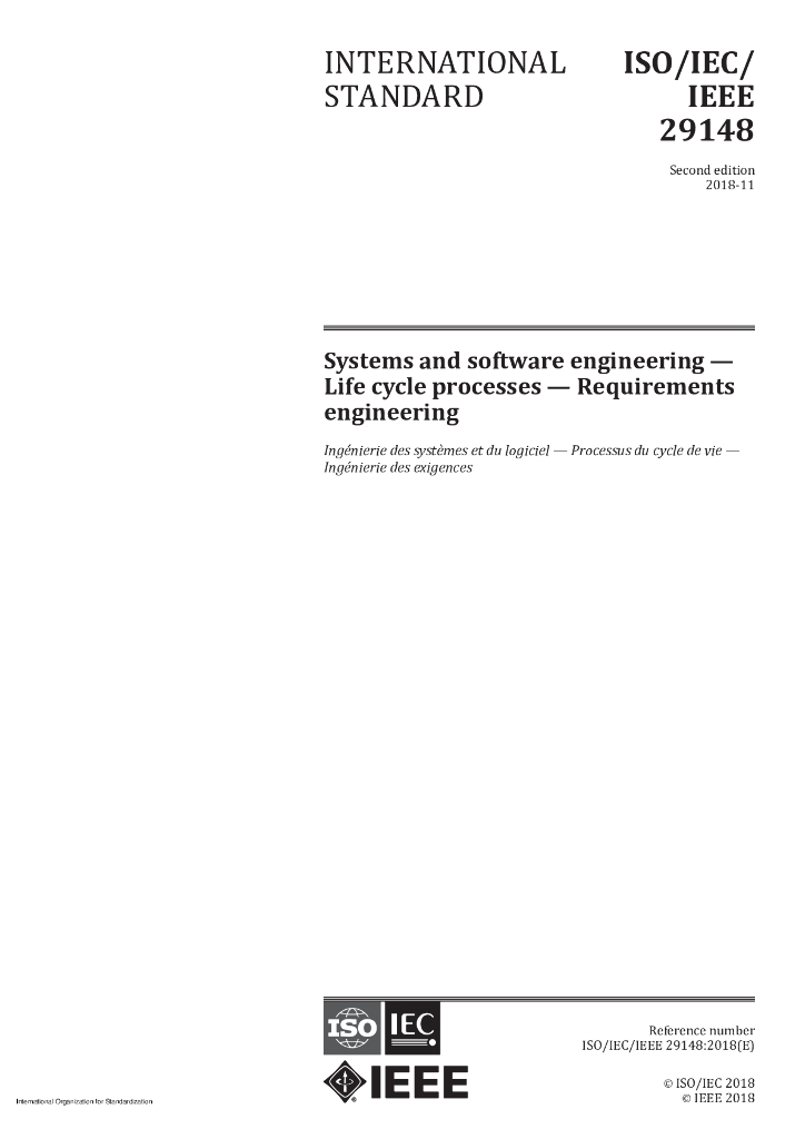ISO/IEC/IEEE 29148-2018 系统和软件工程 生命周期过程 需求工程