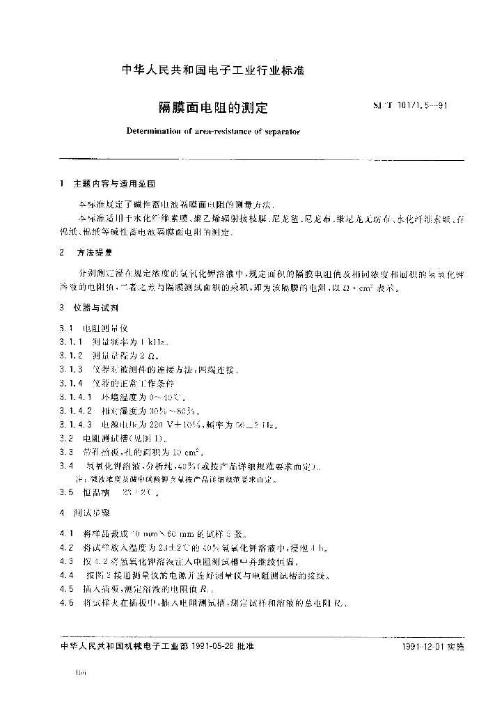 SJ/T 10171.5-1991 隔膜面电阻的测定