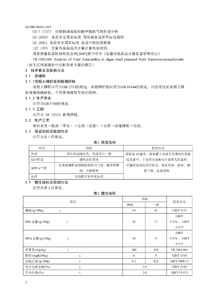 Q/LHB 0001S-2015 山东鲁华海洋生物科技有限公司 南极磷虾油