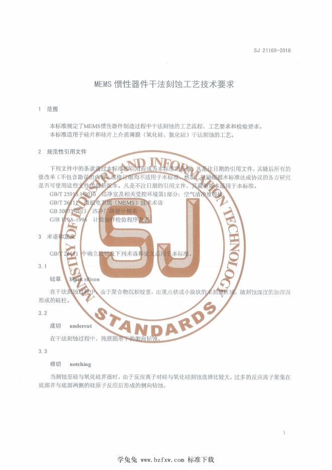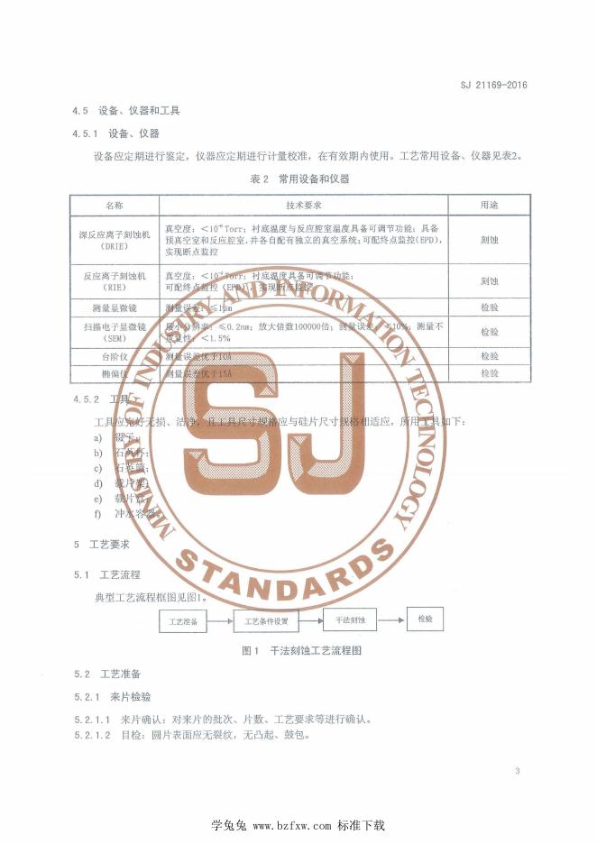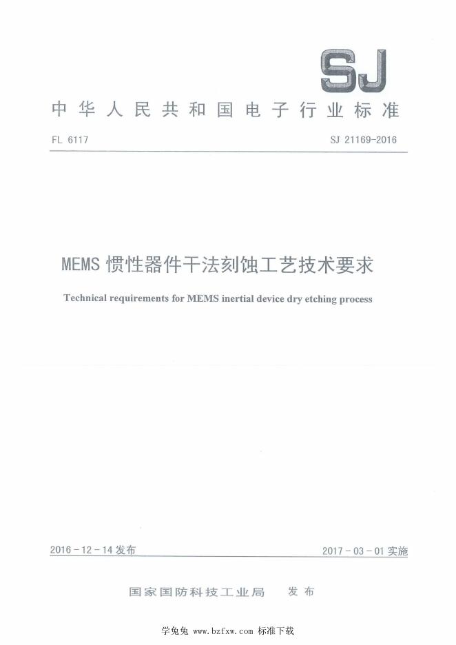 SJ 21169-2016 MEMS惯性器件干法刻蚀工艺技术要求