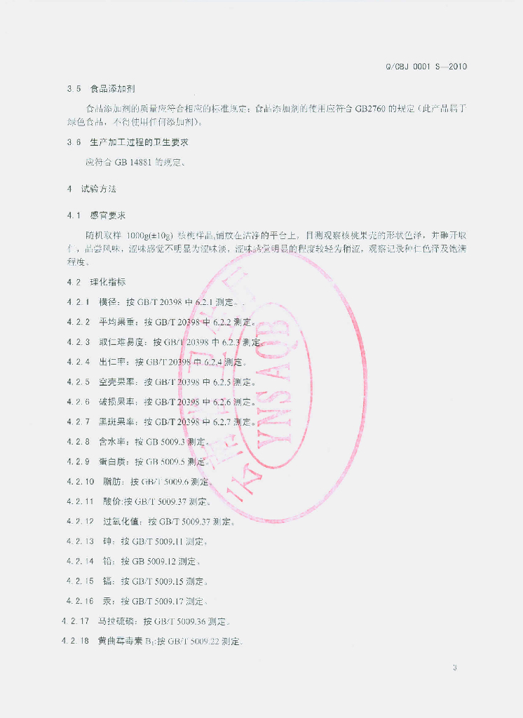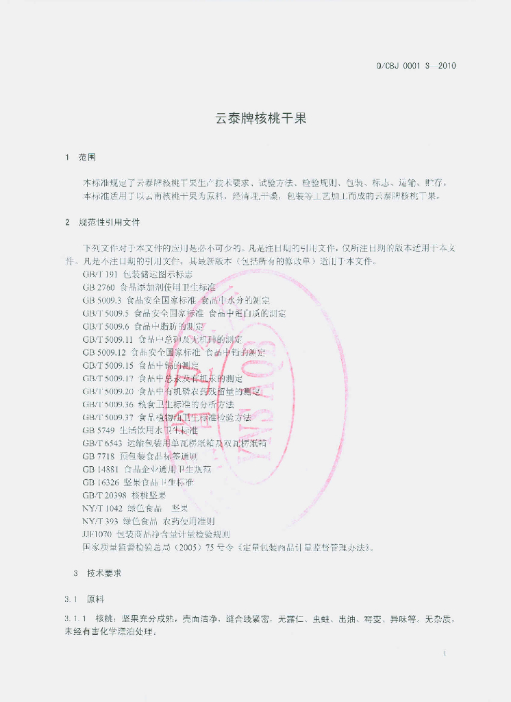 Q/CBJ 0001S-2010 云泰牌核桃干果