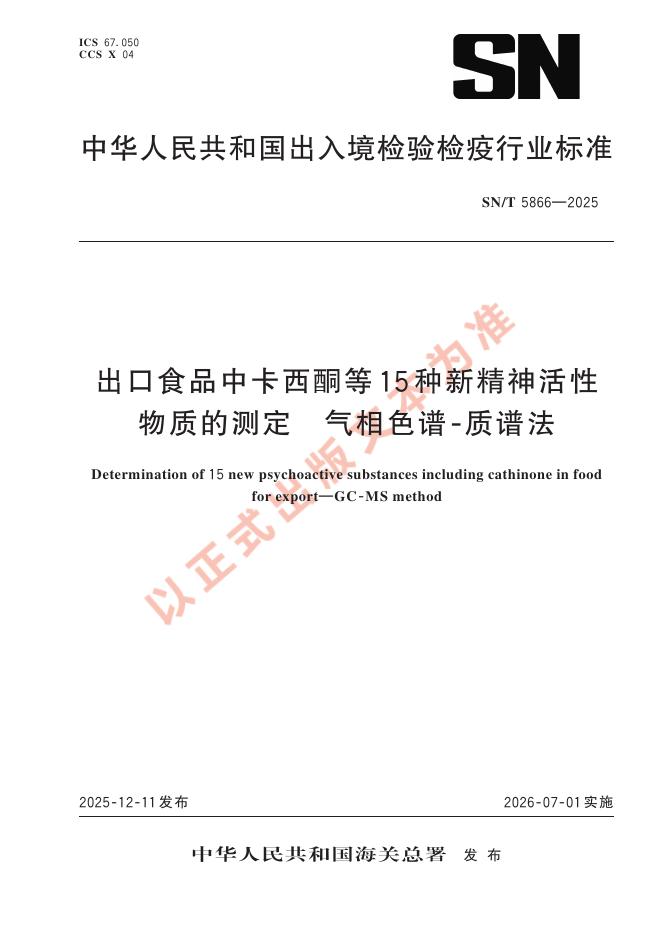 SN/T 5866-2025 出口食品中卡西酮等15种新精神活性物质的测定 气相色谱-质谱法