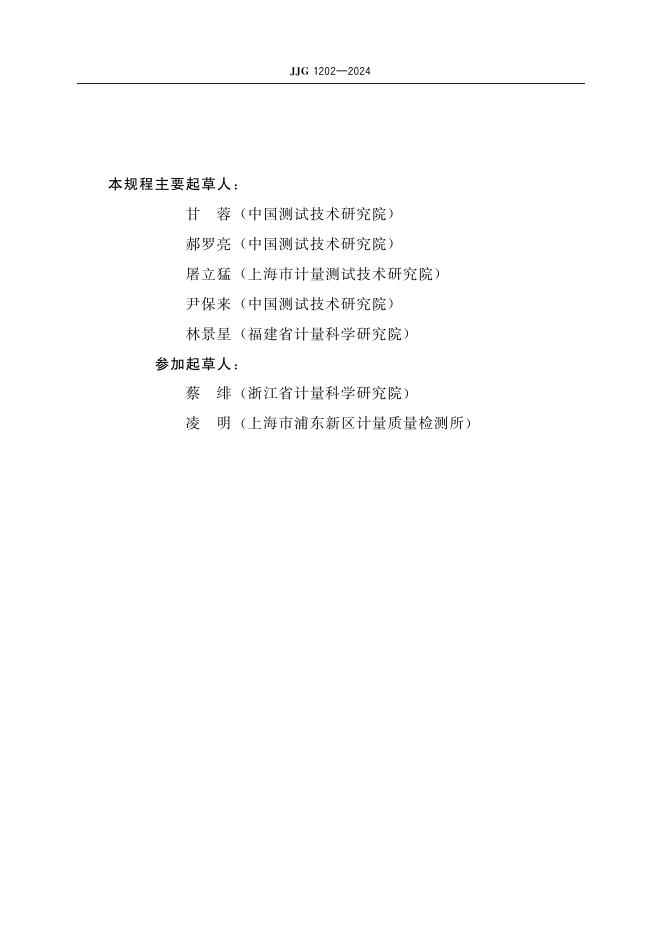 甘蓉(中国测试技术研究院)、郝罗亮(中国测试技术研究院)、屠立猛(上海市计量测试技术研究院)、尹保来(中国测试技术研究院)、林景星(福建省计量科学研究院)、蔡绯(浙江省计量科学研究)、凌明(上海市浦东新区计量质量检测所)