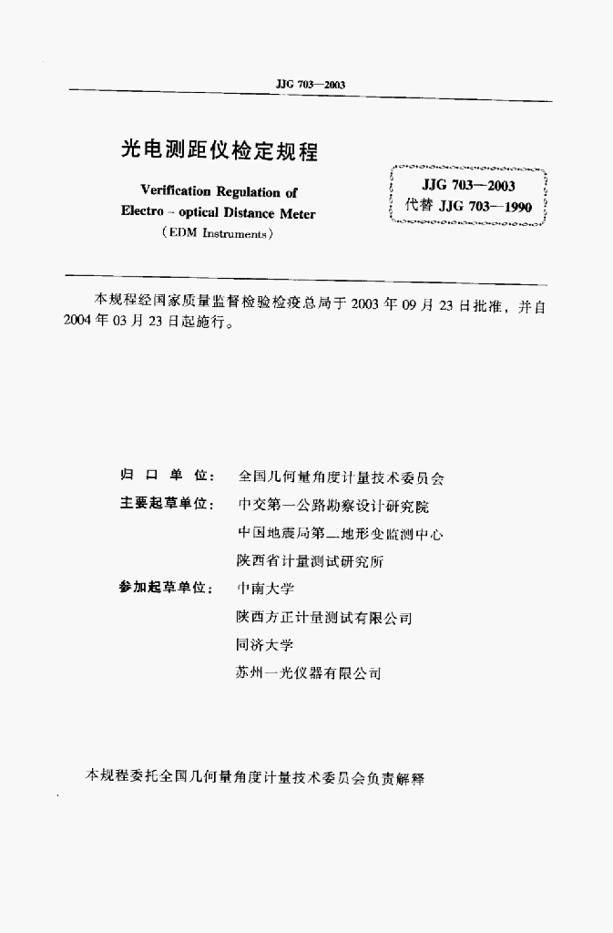 中交第一公路勘察设计研究院、中国地震局第二地形变监测中心、陕西省计量测试研究所、中南大学、陕西方正计量测试有限公司、同济大学、苏州一光仪器有限公司
