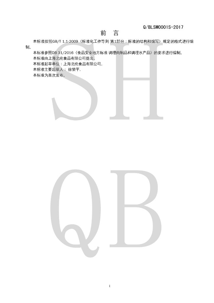 Q/BLSM 0001S-2017 冷冻调理肉制品