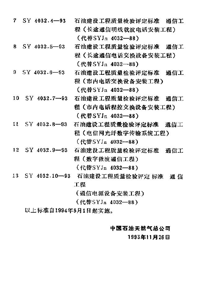 SY 4032.4-1993 石油建设工程质量检验评定通信工程长途通信明线载波电话安装工程